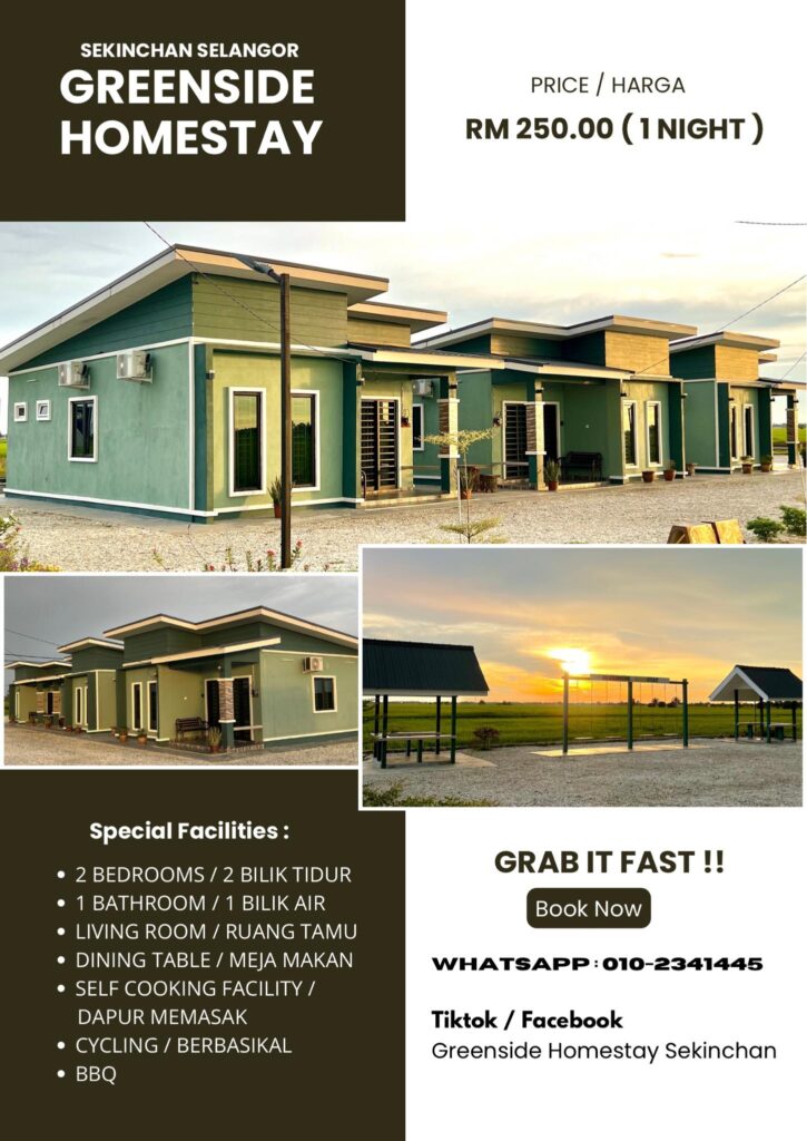 Untuk tempahan : WHATSAPP https://hi.jomwasap.my/greensidehomestay (010-2341445)