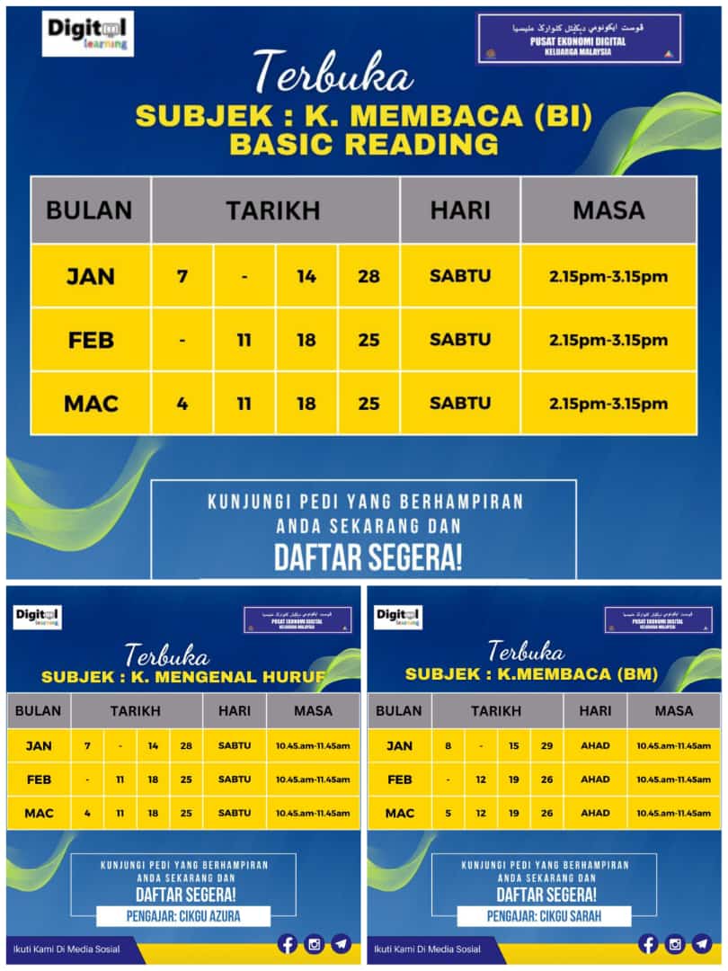 Bagi ibu bapa dan adik-adik yang berminat untuk mengikuti Program Digital Learning E-Tuisyen 2023 boleh daftar ke PEDi Kg Baru Sentosa atau PEDi yang berhampiran dengan anda