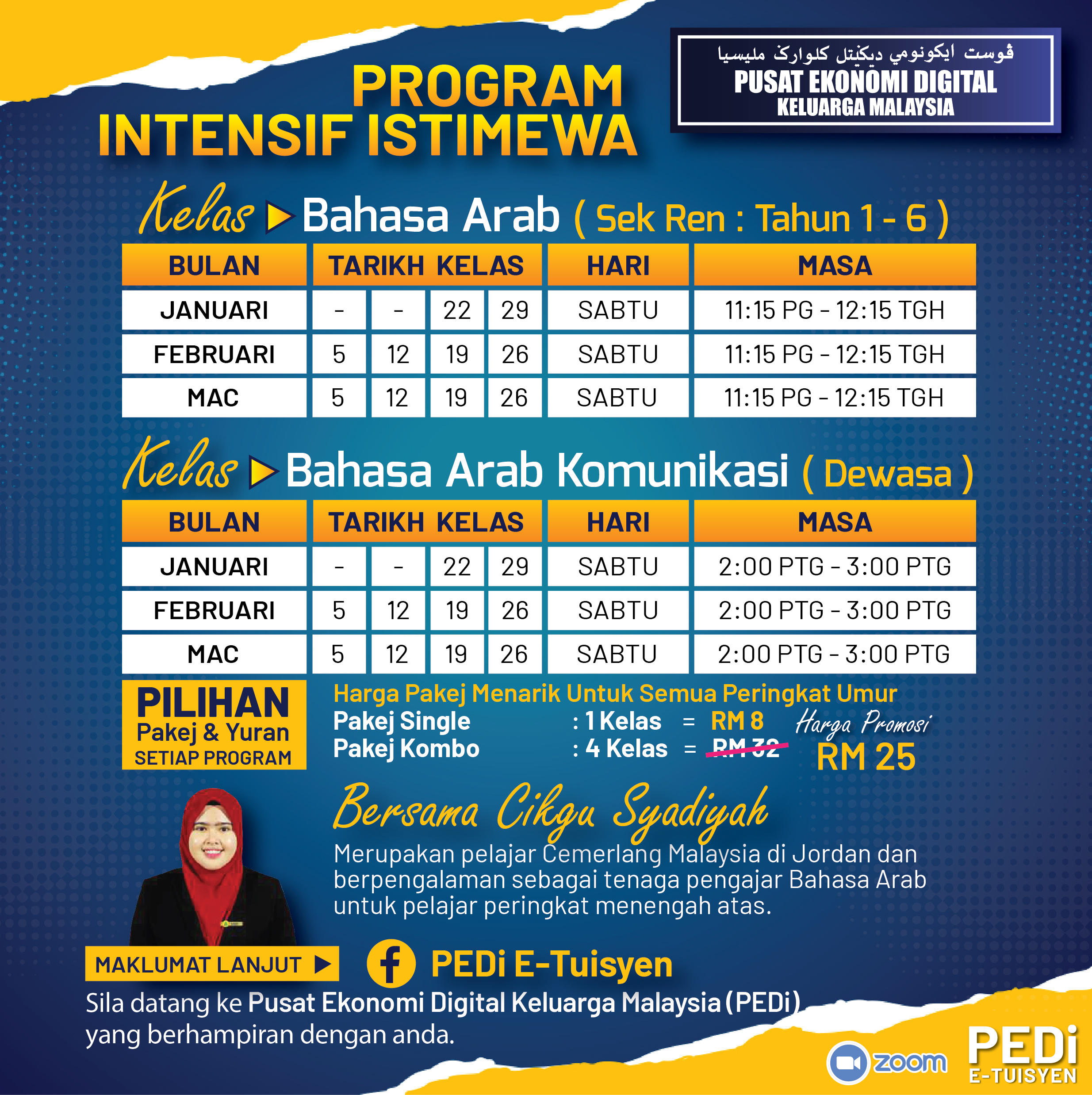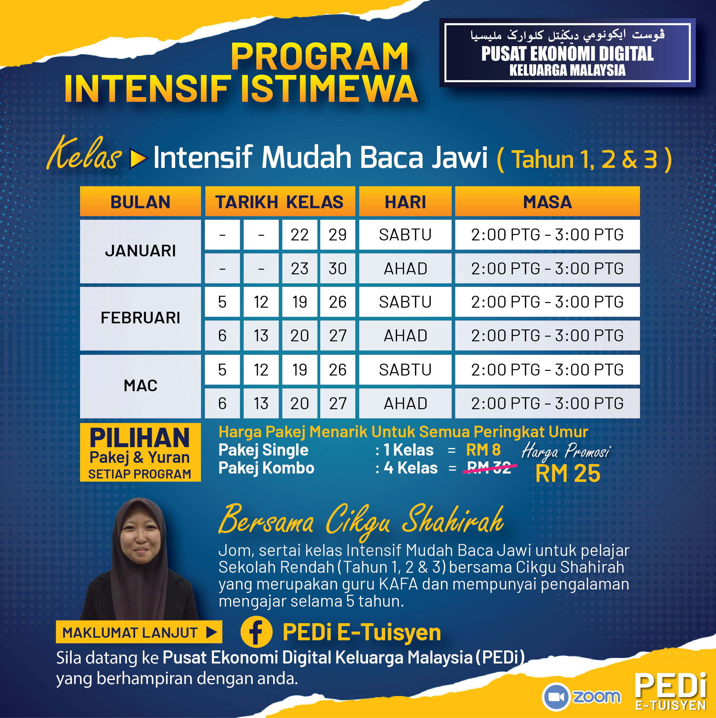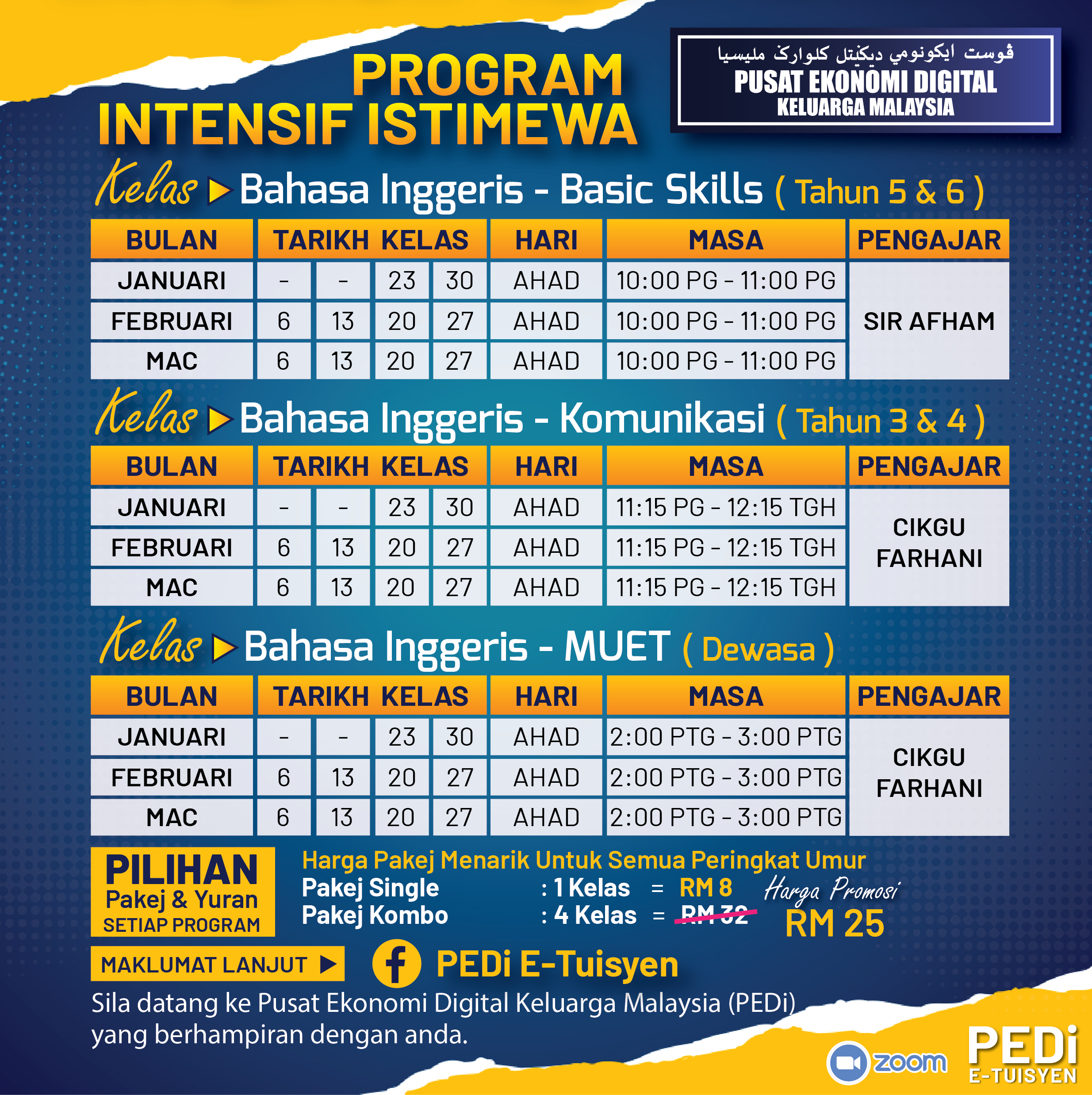 Bagi ibu bapa yang berminat untuk menghantar anak untuk mengikuti Kelas E-Tuisyen 2022 boleh daftar ke Pusat Ekonomi Digital Kg Baru Sentosa atau PEDi yang berhampiran dengan anda